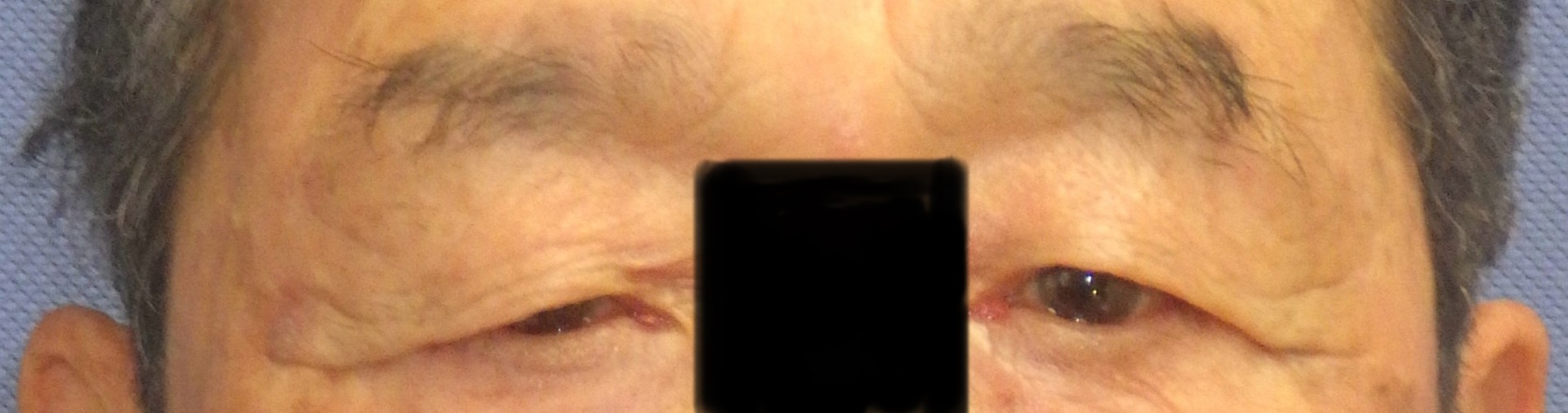 上まぶたが瞳孔(黒目の中心)の一部、または大部分を覆ってしまい、視野が狭くなることで日常生活に支障をきたすことがあります。