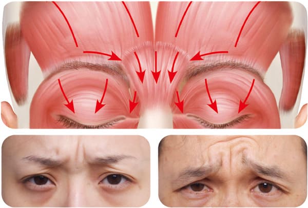 - 顔のシワの多くは、微笑む、笑う、顔をしかめるなどの表情の変化によって筋肉を繰り返し動かすことによってできていきます。